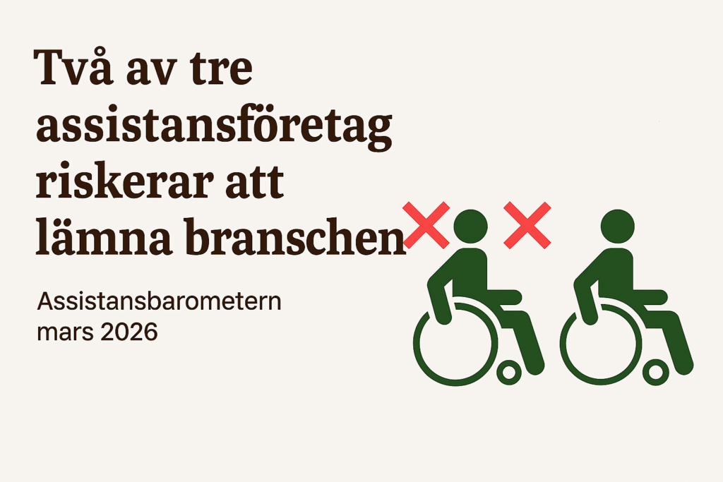 Den ekonomiska krisen inom personlig assistans fördjupas snabbt. I Assistansbarometern mars 2026 visar Vårdföretagarna att nästan två av tre assistansföretag nu överväger att sälja, avveckla sin verksamhet eller riskerar konkurs inom de närmaste åren. Sammantaget pekar resultaten på en bransch som befinner sig i ett akut läge.
